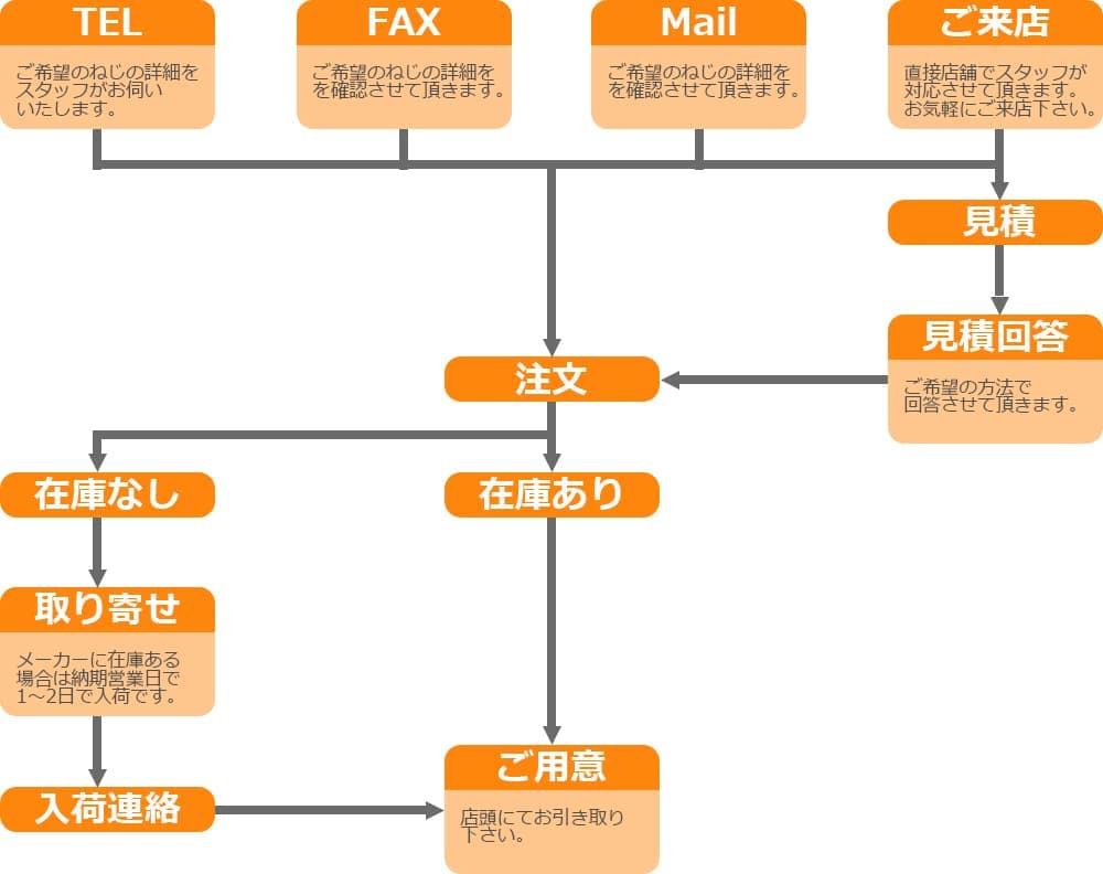 日本では珍しいコンビニ形式のねじ専門店です。ねじの種類やサイズ、用途について不明点があれば、スタッフにお任せください。ねじの専門知識を持ったスタッフがお客様のニーズに適したねじを選ぶお手伝いをさせて頂きます。